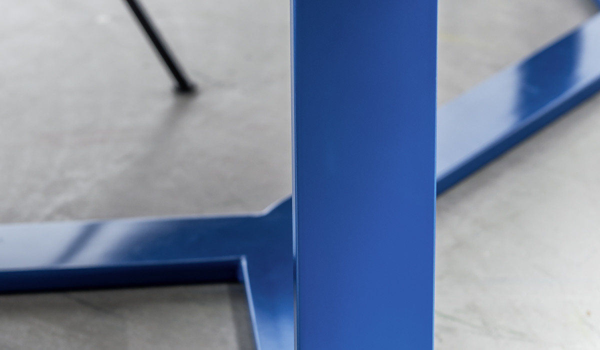 Am “Y” kann keiner gleichgültig vorbeiziehen. Dieser Loft Tisch beeindruckt durch seine Form auf jeder Seite, von der aus er betrachtet wird. Die massive Eichentischplatte ist auf einem urigen Stahlgestell in einer kräftigen und energiegeladenen Farbe montiert. Manchmal ist es genau richtig, sich etwas Extravaganz und Wahnsinn zu gönnen. Ein Loft Tisch mit einem Gestell in kräftigem Blau fügt Ihrem Esszimmer unglaubliche Energien hinzu. Indem Sie sich für dezente Accessoires entscheiden, schaffen Sie einen einzigartigen Ort voller Temperament und Magie, von dem Sie Ihre Augen nicht abwenden können. Neben dem Stahlgestell verdient der schöne Holztisch viel Aufmerksamkeit. Mit äußerster Sorgfalt aus widerstandsfähigem Eichenholz hergestellt. Zarter, heller und kühler Farbton der Tischplatte balanciert die kräftige Farbe Blau perfekt aus und lässt das Ganze perfekt miteinander harmonieren. Tisch Y kann mit einem Gestell in jeder RAL Farbe bestellt werden. Sowohl die Tischplatte als auch das Gestell dieses Lofttisches wurden in unserem Studio vollständig von Hand gefertigt.